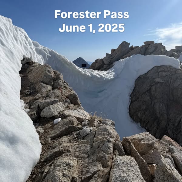 PCT and JMT hikers, take note: Forester Pass is still holding deep snow and a sizable cornice as of June 14. Thanks to PCT hiker “Green Light” for the report! Trail is melting fast, but traction, ice axe, and an early start are still essential. Read the full conditions update here.