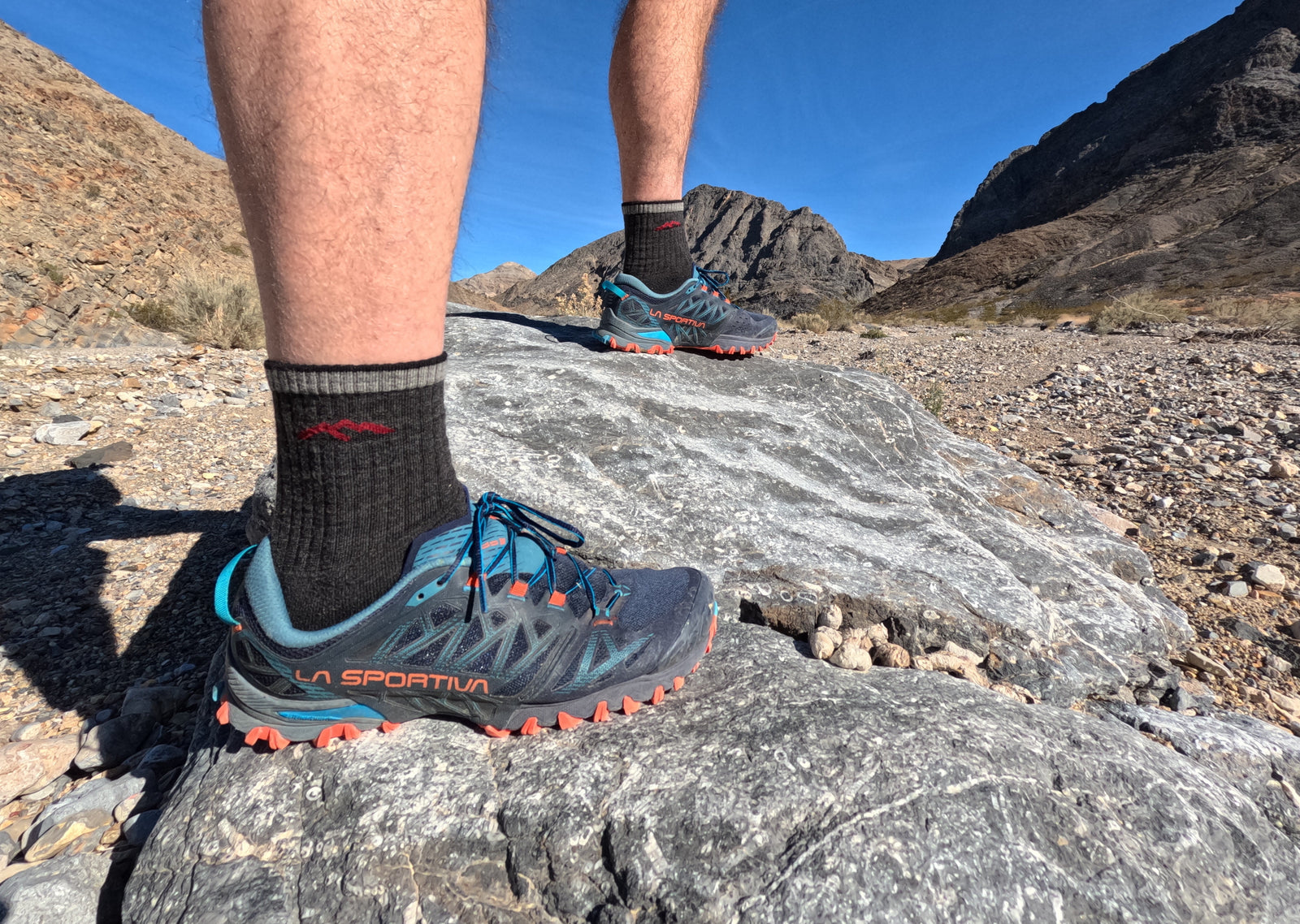 The La Sportiva Bushido III Wide excels on technical trails, talus, and alpine terrain. Field-tested in the Eastern Sierra and Death Valley, it provides stable support, precise control, and comfortable fit for hikers and trail runners seeking performance footwear across rugged terrain.