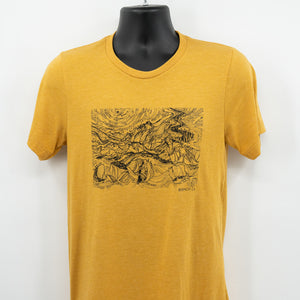 These are one of a kind, printed locally with a design by Oma Kassim, a local artist. The T shirts are made in Nicaragua and are a cotton/poly blend.