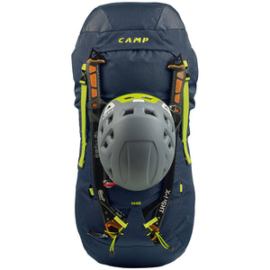 The M45 does a brilliant job merging the capacity of a large pack with the stability, fit and performance of a smaller pack. It incorporates many of the unique features found in the CAMPack range like the BackDoor panel that allows access to the contents of the pack without having to remove everything on top before gaining access to gear at the bottom. Comfort is assured by the new XAir ventilated back with a 3 mm aluminum wire frame and breathable, ergonomic shoulder straps. The padded waist belt is removable for technical activities. It features one zippered pocket and one gear loop. The innovative Balance System uses the same two straps on the top of the shoulders to simultaneously adjust, compress and stabilize the load by pull from the bottom of pack instead of the top. The removable lid features a large main compartment on top and a smaller compartment on the bottom for valuables. A protective cover can be pulled out to cover the top of the pack when the lid is removed. Additional technical features include 2 removable ice axe holders, A-Frame ski carrying straps and external helmet carrying system that can be hidden when not in use, hydration bladder compatibility, and large elastic pockets on the inside of the main compartment for extra organization.