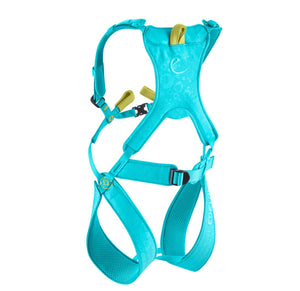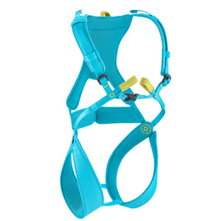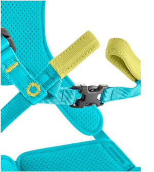 With this padded full body harness even young climbers and little mountaineers weighing up to 40 kg can enjoy a scramble. The stiff construction with the fixed leg loops makes putting the harness on much easier, and thanks to the two Slide Block buckles, the harness is quickly adjusted to the right size. The two large tie-in loops offer enough space for two carabiners clipped in opposite directions (e.g. for top-roping). What makes the Fraggle truly special is that as the child gets bigger, the tie-in point moves and the harness “grows” as well. Besides, the Fraggle is fully manufactured in compliance with the strict bluesign® system requirements, in order to protect the environment, resources, and children.