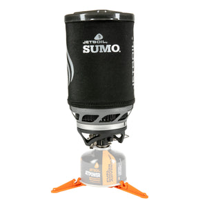 The SUMO packs the same regulator control as other Jetboil-regulated cooking systems, but with a higher-capacity cup-to-fuel cooking ratio for you and your friends. Jetboil's large 1.8-liter FluxRing cooking cup with insulating cozy is the ideal cooking vessel for groups. Jetboil's proprietary regulator technology offers incremental heat adjustments from light simmer to full boil, perfect for sautéing greens, simmering sauces, and more. Add the optional Jetboil Java Press, pot support, skillet, and FluxRing cooking pot to expand your meal options on the trail. Start heating instantly with the convenient, reliable pushbutton igniter—regulated for consistent performance down to 20 degrees F (-6 degrees C). Able to store 100-gram or 230-gram Jetpower fuel can with burner, fuel canister stabilizer, and accessory pot support; weighs 16 ounces.