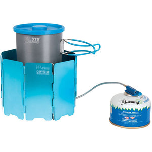 Sturdy, foldable anodized aluminum windshield. Stable in any weather. Directs heat to your cooking pot for more efficient heating. Storage bag included.